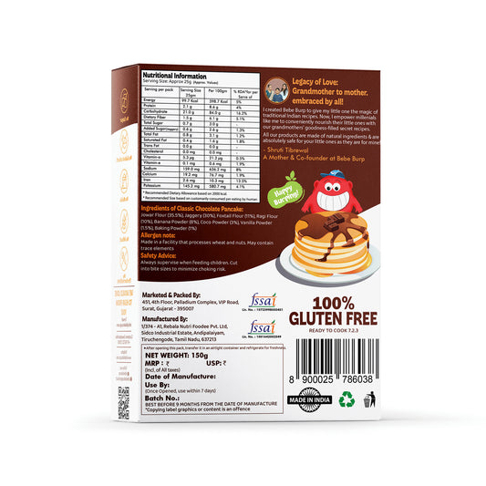 Usage: Mix 1 cup mix with 1 egg (or banana puree), ¾ cup milk and cook till golden.