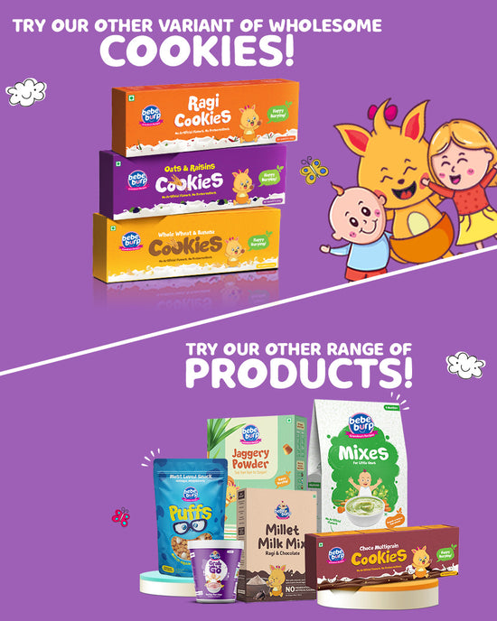 🌾Made with a blend of whole grains like wheat, oats, and millet, our cookies offer a variety of nutrients for overall health and well-being.