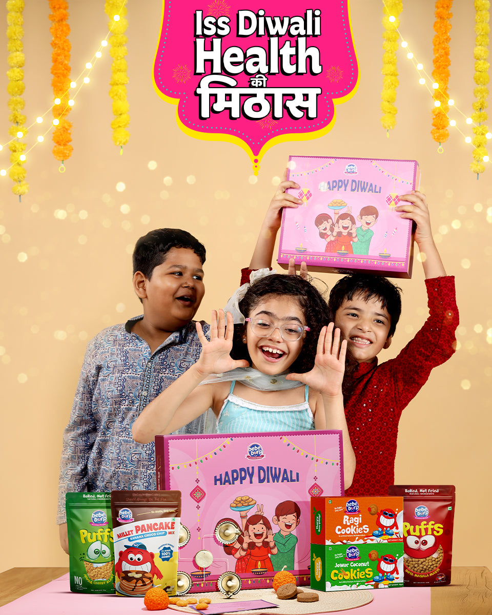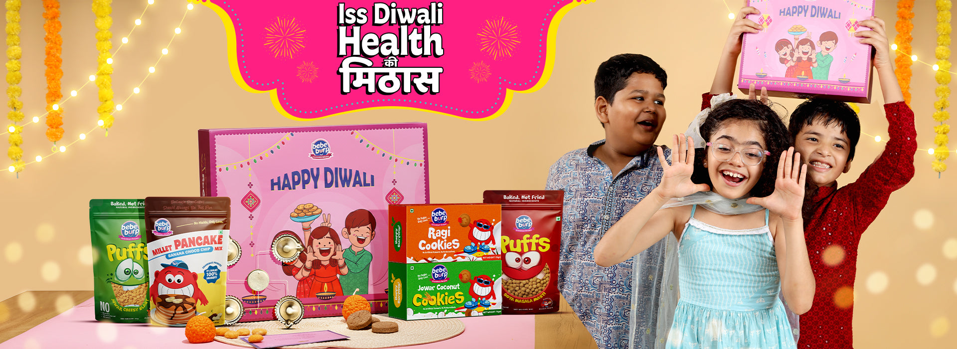 Our exclusive Diwali Delight Hamper is packed with wholesome snacks for kids and family, a festive Swastik diya set, and a personalized greeting card — making it a thoughtful and nourishing gift for your loved ones.