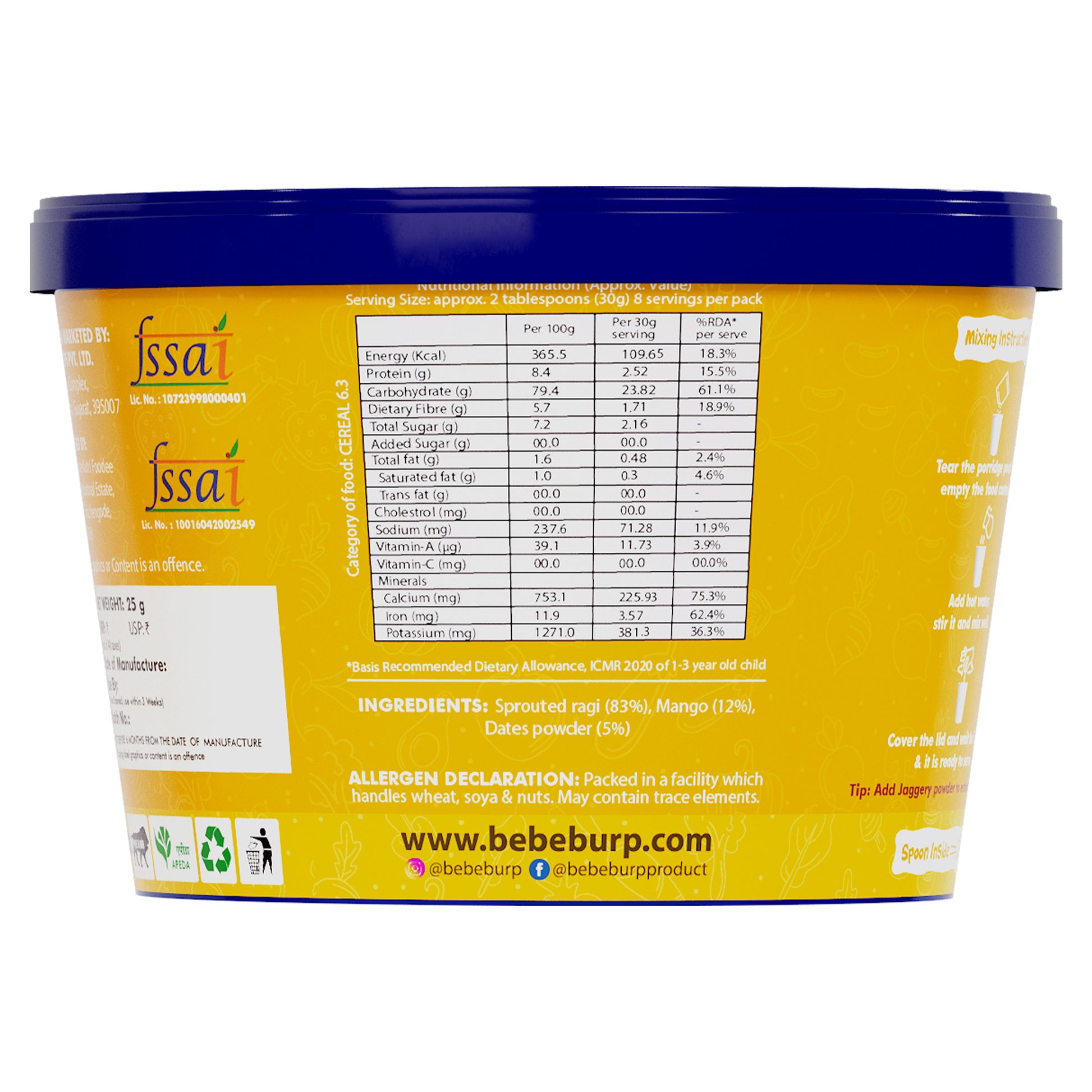Sprouted Ragi(83%), Mango(12%), Date Powder(5%)
