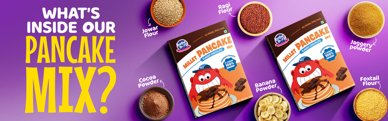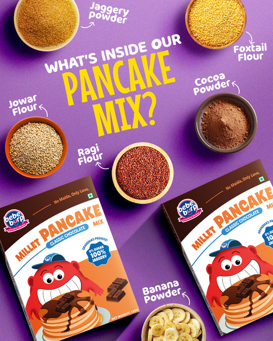 Jowar Flour, Jaggery, Foxtail Flour, Ragi Flour, Banana Powder, Coco Powder, Vanilla Powder, Baking Powder