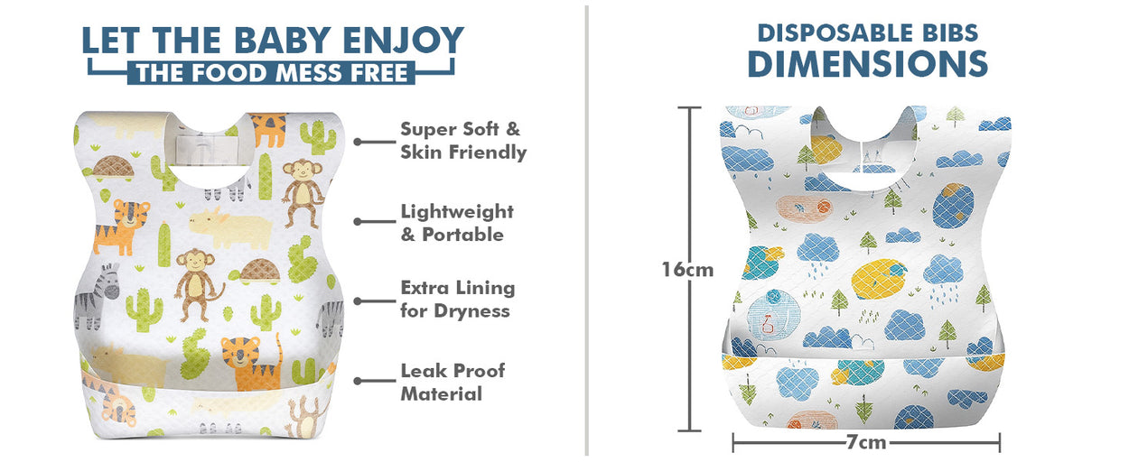 Made from soft, skin-friendly, and leak-proof material, these bibs offer parents a convenient, hygienic, and eco-conscious alternative to washing cloth bibs daily. Whether you’re at home or on the go, enjoy hassle-free feeding time every day!