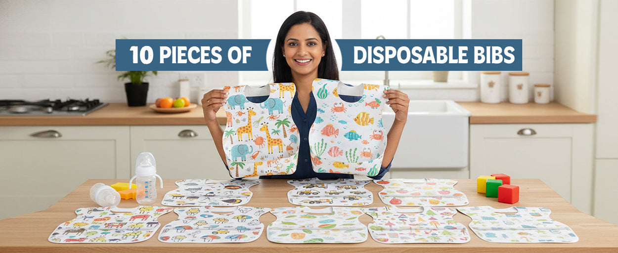 Disposable Baby Bibs for Babies (Pack of 10) | Waterproof, Lightweight & Travel-FriendlyRegular price Rs. 219Regular priceUnit price / perRs. 499Sale price Rs. 219