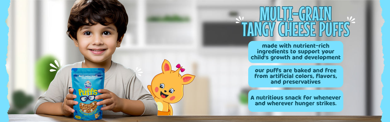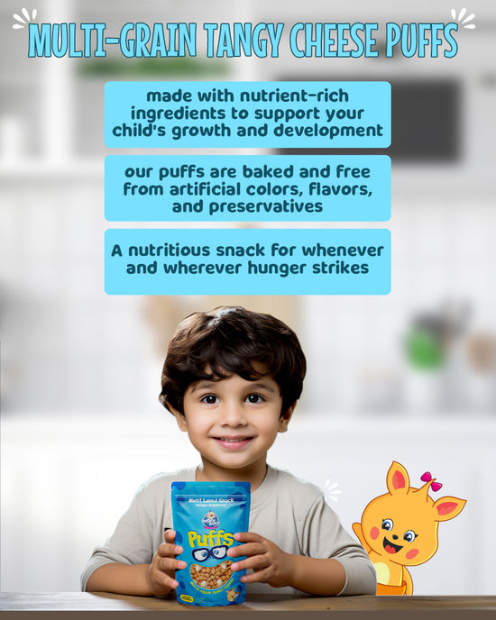 💪 The multigrain blend in our puffs offers essential nutrients, making them a nutritious choice for growing children.