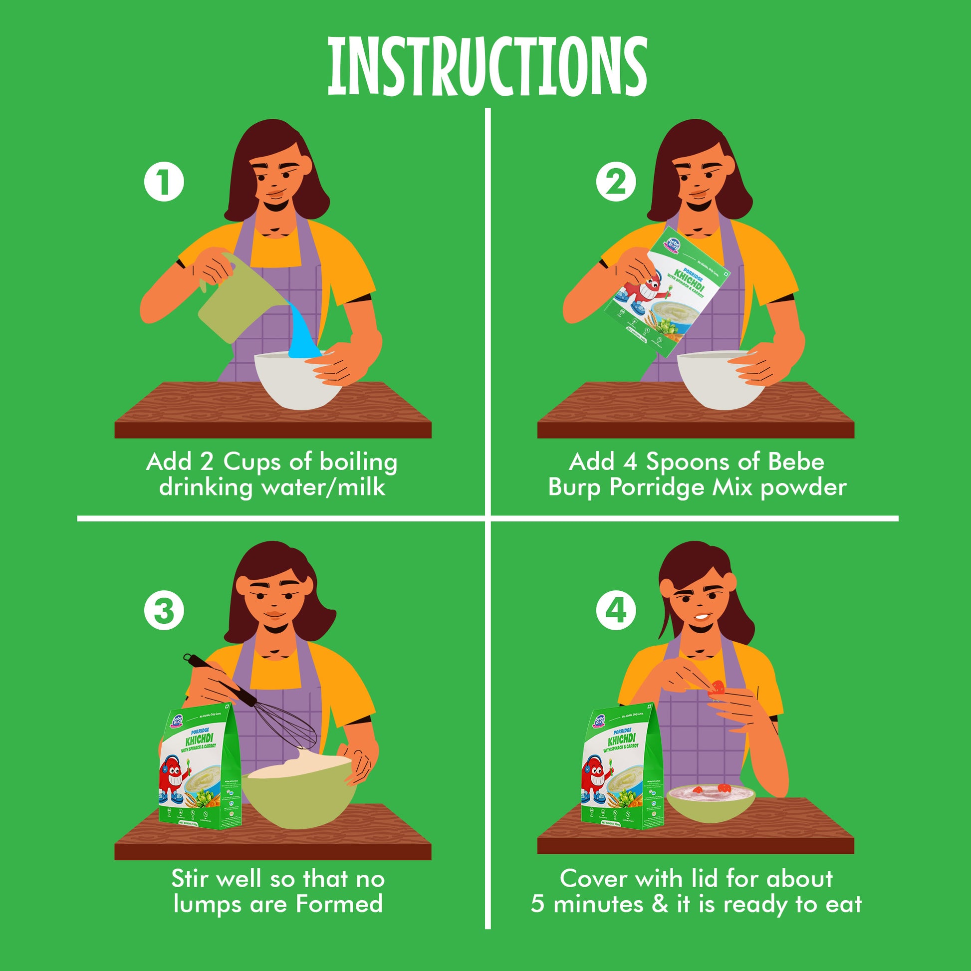 1. Add 4 spoons of Bebe Burp porridge mix