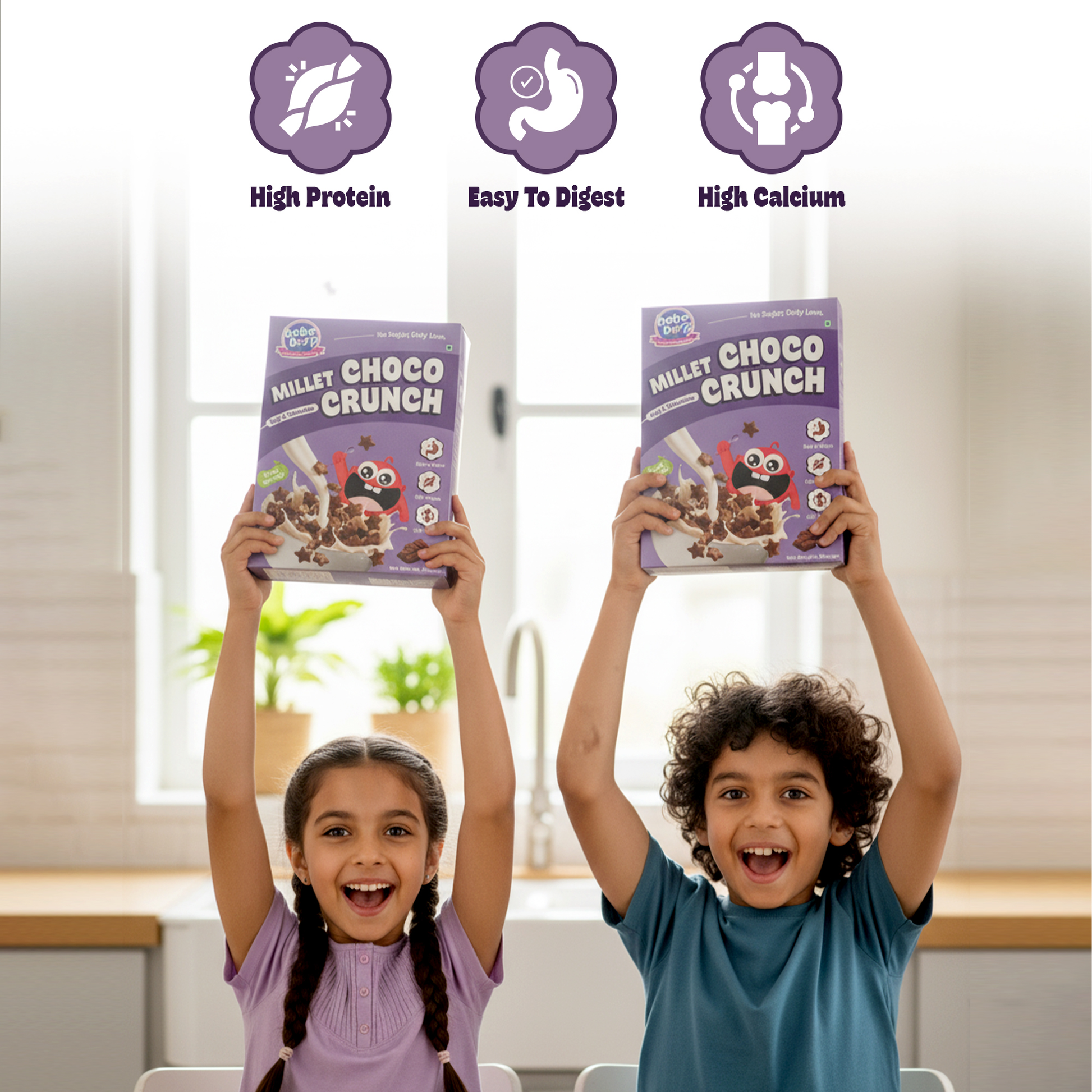 🍫 Bebe Burp Millet Choco Crunch – a crunchy, chocolatey breakfast cereal made with 100% natural millets like Ragi, Jowar & Rice.