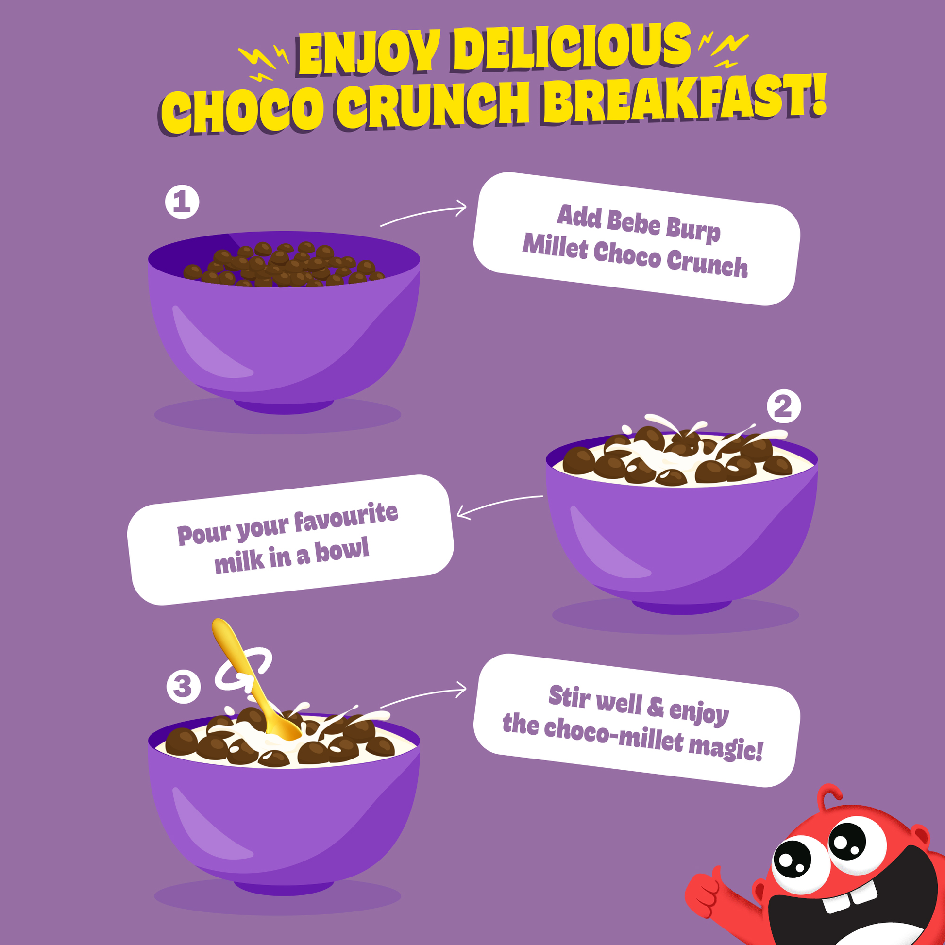 1) Add Bebe Burp Millet Choco Crunch to a bowl
