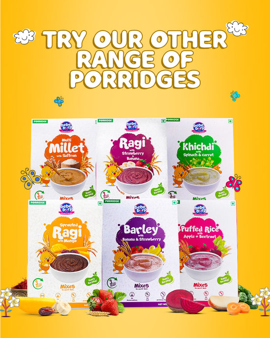 🌾The addition of Puffed rice provides a delightful crunchy texture to the porridge, making it more appealing and enjoyable for children, encouraging them to develop healthy eating habits from an early age.