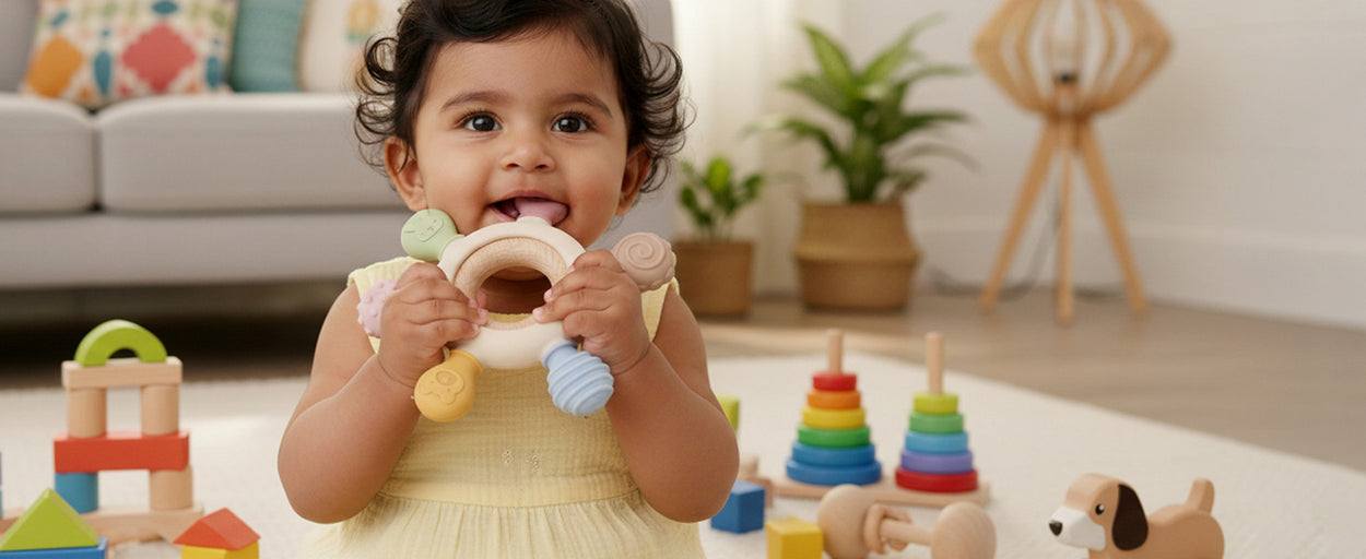 Silicone Wooden Baby Teether | BPA-Free Infant Teething Toy (3+ Months)Regular price Rs. 399Regular priceUnit price / perRs. 999Sale price Rs. 399