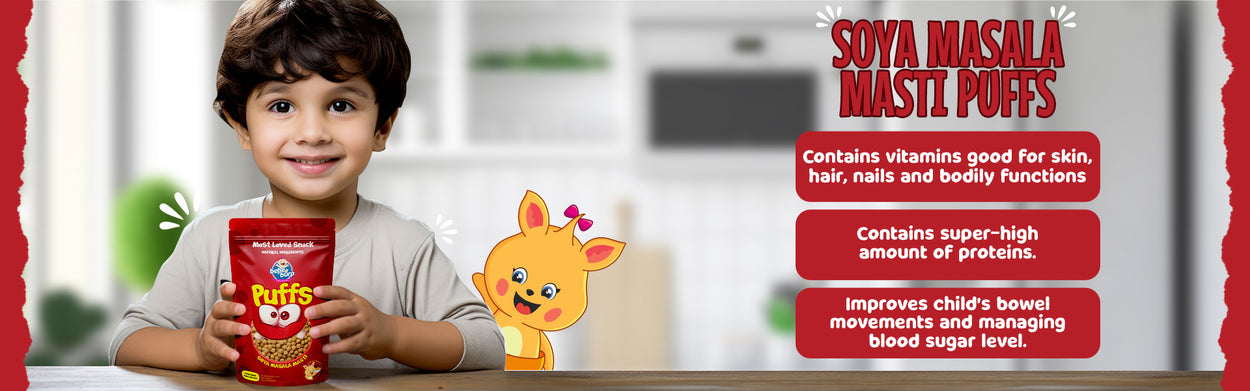 🌾 Unlike traditional snacks, our puffs are made without maida, ensuring they are gluten-free and healthier for your child.
